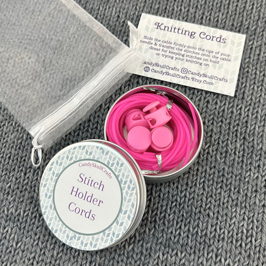 6 Knitting Stitch Holder Cords or Cables in a Tin. Stitch Keeper Hollow Tubing, Accessories, Notions, Supplies
